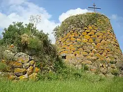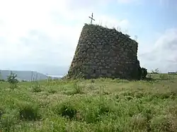 Es ist eine „Nuraghe a tancato“[1] aus Basaltblöcken, die in regelmäßigen Reihen angeordnet sind.