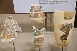 - ↑ Peter Pfälzner: Nuzi Ware Vessels, in: Joann Aruz, Kim Benzel, Jean M. Evans (Hrsg.): Beyond Babylon, Art, Trade, and Diplomacy in the Second Miellennium B.C. The Metropolitan Museum of Art, New York, Yale University Press, New Haven and London, ISBN 978-1-58839-295-4, S. 199 Nr. 120a, b.
