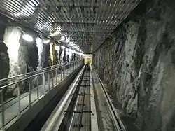 Der Aufzug wird mit einem Wagen bedient, der in seiner Innenausstattung den C4-U-Bahn-Wagen aus den 1960er Jahren gleicht.[2] Der Wagen wurde zwischen November 2008 und dem 1. März 2009 renoviert und erhielt die blaue Lackierung wie die C20-U-Bahn-Wagen. Ursprünglich hatte der Wagen Platz für 35 Personen, dies wurde jedoch auf 17 Plätze reduziert. Der Wagen fährt auf Gummirädern und wird von einem Seil gezogen. Vom Wagen läuft das Zugseil um eine Rolle in der oberen Station. Am anderen Ende ist ein Gegengewicht angebracht, das sich zwischen den Fahrspuren des Wagens bewegt.[2]
