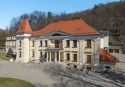 - Im Unterdorf liegt in einem Park ein kleineres Schloss, das 1930 von der Kongregation der Franziskanerinnen aus Münster als Provinzialmutterhaus und Erholungsheim erworben wurde. Nunmehr dient es als Mutterhaus der polnischen Ordensprovinz.