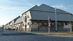 Gegenüber dem Pförtnerhäuschen befindet sich der Eselstall. Dieser beherbergte früher die Esel, die die Lasten über das Ostragelände zogen. Für die OSTRALE’O9 wurde die Fassade des Hauses vergoldet sowie als Projektionsfläche genutzt.