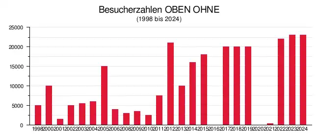 - ↑ Oben Ohne Open Air 2012 – ein neuer Besucherrekord ( vom 17. November 2015 im Internet Archive), weissblau.de.