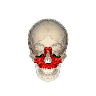Rotierender Schädel mit rot markiertem Oberkiefer vom Projekt Anatomography