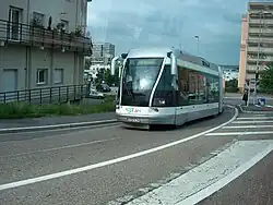 - ↑ Tramway sur pneumatiques ist die im Französischen übliche Bezeichnung für eine Straßenbahn auf gasgefüllten Reifen, die durch eine mittig in der Fahrbahn versenkte Leitschiene in der Spur gehalten wird.
