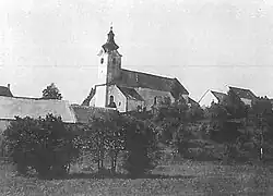) war umgeben vom Friedhof und von alten Laubbäumen. Die Gebäude um die Kirche bildeten ein markantes Ensemble. Am Fuße des Kirchhügels lag das „Brünnl“, das zur Heilung von Augenleiden aufgesucht wurde.