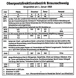 Vom 1. Juli 1871 ab veranlasste das General-Postamt in Berlin, dass die Post-Verwaltungsgeschäfte für das Amt Polle, die Stadt Bodenwerder, für die Kreise Osterode, Göttingen, Einbeck und Zellerfeld, sowie für die Ämter Liebenburg und Wöltingerode und die Stadt Goslar, von der verwaltungsmäßig zu großen Ober-Postdirektion in Hannover an die Ober-Postdirektion in Braunschweig übergingen.