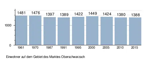 Im Zeitraum 1988 bis 2018 stieg die Einwohnerzahl von 1385 auf 1420 um 35 Einwohner bzw. um 2,5 %. Quelle: BayLfStat