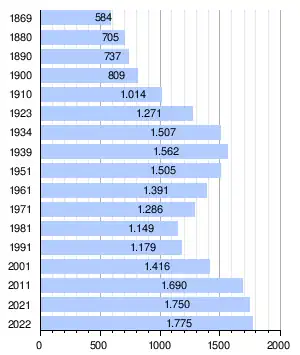 In der Popreg-Datenbank wurden für das Jahr 2010 1708 Einwohner ermittelt. Nach dem Ergebnis der Volkszählung 2001 gab es 1416 Einwohner. 1991 hatte die Marktgemeinde 1179 Einwohner, 1981 1149 und im Jahr 1971 1286 Einwohner.