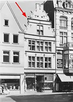 Kunstgeschichtlich gehört das Haus, das vor seiner Zerstörung 1944 im Erdgeschoss die Ladengeschäfte von Otto Scharrenbroich und Michael Neff beherbergte, zu den bemerkenswertesten Bürgerbauten der Dürener Altstadt.