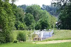 - ↑ Daten des Hochwasserrückhaltebeckens nach dem Layer Stauanlage.