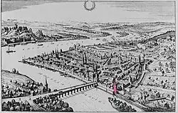 - ↑ Gabriel Bodenehr: Coblenz [Stadtansicht]. (bildindex.de – Kupferstich um 1720 noch mit Kegeldach). Die Stadt Coblenz mit sambt der Festung. (bildindex.de – Zeichnung von 1730 ohne Kegeldach). Friedrich Bernhard Werner [Zeichner]: Confluentia Coblentz [Stadtansicht]. (Kupferstich um 1730 ohne Kegeldach).