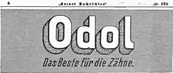 - ↑ Odol betreffend.: „Rundschau“ für die Interessen der Pharmacie, Chemie und verwandter Fächer. Abonnement-Beiblatt des „Pharm(aceutisch)-chem(isch) Allgemeinen Geschäftsblattes“ / Rundschau für die Interessen der Pharmacie, Chemie(, Hygiene) und der verwandten Fächer.( Abonnements-Beiblatt des „(International) Pharmac(eutisch)-chem(isch) Allgemeinen Geschäftsblattes“) / (Pharmaceutische) Rundschau. Wochenschrift für die Interessen der Pharmazie/Pharmacie, Chemie, Hygiene und der verwandten Fächer, Jahrgang 1894, S. 500 (online bei ANNO).