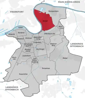 Bürgel ist ein Stadtteil der südhessischen Großstadt Offenbach am Main und liegt im Mainbogen direkt am Main. In diesem Stadtteil lebten im Dezember 2022 etwa 10.300 Menschen.[1]