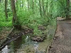 Der Offenbacher Stadtwald reicht als geschlossenes Waldgebiet im Süden der Stadt von Gravenbruch über Heusenstamm bis Obertshausen. Im Osten Offenbachs liegt ein weiterer Waldteil, der Lohberg. Der Stadtwald dehnt sich über eine Fläche von 1.330 Hektar aus, davon sind 1.256 Hektar baumbestanden.[13] Etwa 54 % der Waldfläche sind mit Kiefern bewachsen, 21 % mit Buchen sowie 14 % mit Eichen.[14] Eine Revierförsterei befindet sich am Rand des Stadtteils Bieber, Forstbehörde ist das Forstamt Langen.