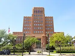 Der erste Rathausbau wurde 1888 vollendet.[15] Die Hauptstraßen in Ogden waren zu Beginn nach wichtigen Persönlichkeiten der LDS-Kirche benannt. Unter dem ersten nicht-mormonischen Bürgermeister, Fred J. Kiesel (1889–1891), wurden die Straßen in Ogdens Innenstadt am 5. April 1889 umbenannt. Die in Nord-Süd-Richtung verlaufenden Straßen wurden nach amerikanischen Präsidenten benannt, die Straßen in West-Ost-Ausrichtung waren vorher bereits durchnummeriert, aber die ursprüngliche Zählung wurde verändert, um die Stadterweiterungen einzubeziehen. So wurde aus der ehemaligen First Street nun die 21th Street. Eine der wenigen Straßen, die nicht umbenannt wurde, war die Wall Avenue, entlang der 1855 eine sogenannte „Spanische Mauer“ mit einer Höhe von 2,43 m (acht Fuß) zwischen 21st Street und 28th Street errichtet worden war. Als erste Straße wurde 1893 die 25th Street zwischen Washington Avenue und Wall Avenue geteert, die Kosten beliefen sich dafür auf 100.000 $.[24]