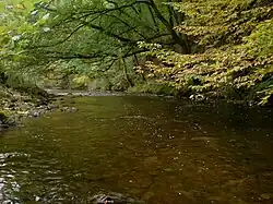 - (Zufluss aus der Schlagklinge), von rechts an der Ohrnbrücke unterhalb von Floßholz auf etwa 281,4 m ü. NHN, 1,1 km[6] und ca. 0,6 km².