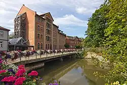 Gegenüber der Schleuse liegt der Große Zimmerhof, wo vom Mittelalter bis zum Eisenbahnbau alles Holz, das auf der Oker nach Wolfenbüttel geflößt wurde, angelandet wurde.