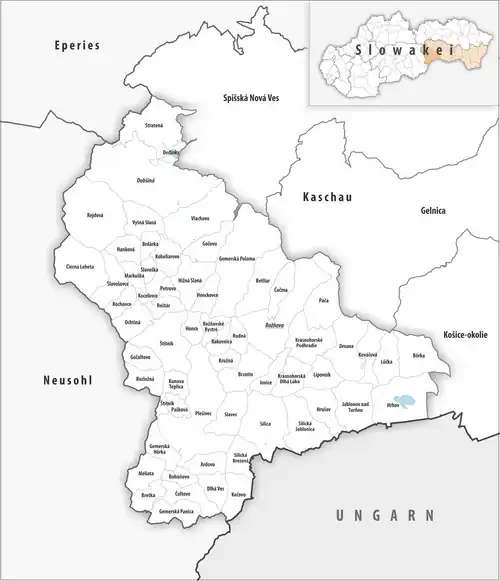 Der Okres Rožňava ist eine Verwaltungseinheit in der Ostslowakei mit 61.902 Einwohnern (2004, 2001 waren es 61.887, davon 38.967 (63,0 %) slowakisch, 18.954 (30,6 %) ungarisch) und einer Fläche von 1.173 km².