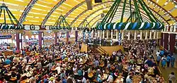Von den 127 Gastronomiebetrieben[53] bieten die 38 Festzelte in Summe etwa 117.000 Sitzplätze an; drei Zelte davon befinden sich auf der Oidn Wiesn („Tradition“, „Herzkasperl-Festzelt“ und das Volkssängerzelt „Schützenlisl“) mit zusammen etwa 12.500 Plätzen.