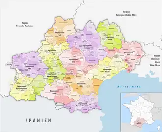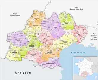 ![]() Reliefkarte der Region Okzitanien (Verwaltungsregion) | |