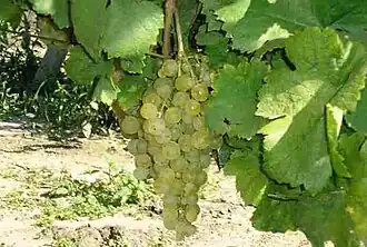 - Die konus- bis walzenförmige Traube ist dick aber kurz und lockertbeerig. Die rundlichen Beeren sind klein bis mittelgroß und von goldgelber Farbe. Die Beeren haben ein leichtes Muskataroma, das sie an den Wein weitergeben.