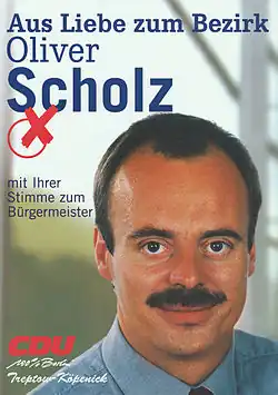 Oliver Scholz trat 1986 der CDU bei. Er war von 2001 bis 2003 stellvertretender Landesvorsitzender der Berliner CDU und zudem von 2002 bis 2005 Kreisvorsitzender CDU Treptow-Köpenick. Von 2003 bis 2005 saß er außerdem als Beisitzer im Landesvorstand.