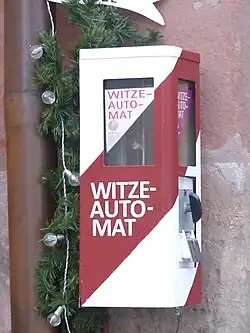 - ↑ Nürnberger Witze-Automat: Einmal Lachen für 20 Cent. In: bild.de. 2. Dezember 2018, abgerufen am 10. Dezember 2018.