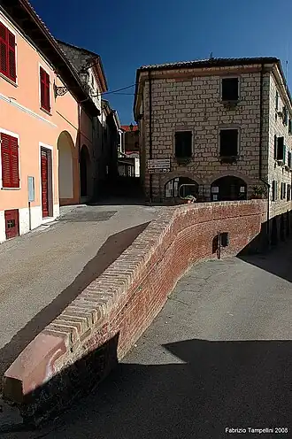 - Die Ruinen einer Burg, die lange Zeit der Familie Malaspina gehörte. Beim Erdbeben von 1920 stürzte das imposante Bauwerk mit den vier massiven Ecktürmen ein.[3]