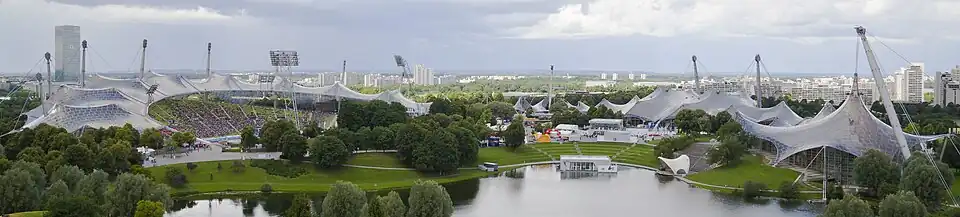 - ↑ Susanne Wanninger: Olympiapark München. Wahrzeichen dank wegweisender Architektur. München 2012, S. 15.