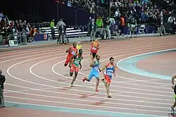 Das 400-Meter-Finale von London 2012: James (im grünen Trikot) liegt an dritter Stelle