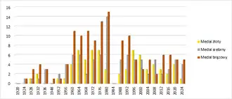 Insgesamt traten 3699 Athleten, unter ihnen 704 Frauen, an. Sportler aus Polen konnten bislang 291 Medaillen gewinnen, davon 271 bei Sommer- und 20 bei Winterspielen. Erfolgreichste Athletin ist die Leichtathletin Irena Szewińska, die zwischen 1964 und 1980 sieben Medaillen gewann, darunter dreimal Gold.[1] Erster Medaillengewinner war der Reiter Adam Królikiewicz, der bei den Olympischen Sommerspielen 1924 in Paris einmal Bronze gewann. Erfolgreichste Sportart ist Leichtathletik im Sommer mit 23 Gold-, 18 Silber- und 13 Bronzemedaillen und Skispringen im Winter mit drei Gold-, drei Silber- und einer Bronzemedaillen. Die beste Platzierung im Medaillenspiegel erreichte Polen 1976 in Montreal mit dem sechsten Platz.