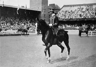 Die Dressur hatte sich zu dieser Zeit bei weitem noch nicht als eigenständige Pferdesportart etabliert. Piaffe und Passage wurden noch nicht verlangt, stattdessen waren fünf Sprünge über bis zu 110 cm hohe Hindernisse gefragt, von denen das letzte eine auf das Pferd zurollende Walze war.[1]