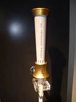 Die Fackel der Olympischen Spiele von Moskau war aus silber lackiertem Aluminium mit zwei goldfarbenen Ringen gefertigt. In roter Farbe war das Emblem der Moskauer Spiele und in kyrillischer Schrift „Moskau Olympiade 1980“ aufgedruckt. Um eine Brenndauer von ca. acht bis zehn Minuten pro Fackel zu erreichen, wurde als Brennstoff ein Gemisch aus Propan- und Butangas verwendet. Insgesamt stellten Werkstätten in Leningrad 6200 Exemplare der Fackel her.