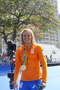 Olympiasiegerin Sharon van Rouwendaal mit der Goldmedaille
