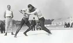 Drei amerikanische Teams traten zum Wasserballturnier an, wobei Unklarheit darüber besteht, ob Wasserball damals überhaupt eine olympische Sportart war. Dafür spricht, dass das Turnier für Amateure ausgeschrieben war und dass Ausländer hätten teilnehmen dürfen, falls sie dem gleichen Verein angehörten. Allerdings verzichteten sie auch deswegen, weil das amerikanische Wasserballspiel zu Beginn des 20. Jahrhunderts von den europäischen Regeln abwich und eher einer Art Volleyball glich.[41] Es gewann die Mannschaft des New York Athletic Club. Nach aktuellem Stand des IOC wird der Wettbewerb aber doch offiziell anerkannt.[42]