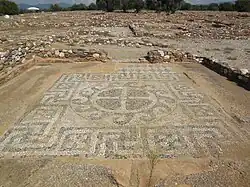 Im Norden der Altstadt fanden die Ausgräber die Fundamente eines mit 32 × 16 m verhältnismäßig großen rechteckigen Gebäudes, das wahrscheinlich öffentlich genutzt wurde. Ein weiteres größeres Gebäude befand sich im Süden der Altstadt und wurde wohl nach dem Persersturm von 479 v. Chr. errichtet und als öffentliches Gebäude genutzt. Durch den Ausbau der Stadt 432 v. Chr. und dem Zuzug neuer Einwohner kamen zusätzliche Bauten für das wirtschaftliche und gesellschaftliche Leben hinzu. So lag im südlichen Bereich der Neustadt auf dem Nordhügel eine 135 × 85 m unbebaute Fläche, die an der Nordseite und Nordostecke von öffentlichen Einrichtungen begrenzt wurde. Eine Häufung von Münzfunden im Umkreis dieses Platzes ließ vermuten, dass es sich hierbei um den zentralen Platz der Polis, die Agora, handelte. Ein weiterer Deutungsansatz sah hier einen heiligen Bezirk mit Tempel, der allerdings durch Grabungen bisher nicht nachgewiesen werden konnte. Auf der Nordseite des Platzes stand eine Säulenhalle. Daran schloss sich östlich ein Gebäude an, dass mit einer zentralen Säulenreihe ausgestattet war und so eventuell Versammlungen dienen konnte. Ein Brunnenhaus bildete die Nordostabgrenzung des Platzes. Der Nachweis eines Theaters konnte bislang nicht erbracht werden. Jedoch bot eine Einbuchtung am Südosthang des Südhügels ausreichend Raum für mögliche Zuschauerränge, weswegen an diesem Ort zumindest Theaterstücke sehr wahrscheinlich aufgeführt wurden.