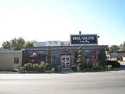 Omak ist eine Planstadt. Während des 20. Jahrhunderts plante Ross, was die Stadt Omak werden sollte.[8][59] Im Jahr ihrer Gründung entstand ein zentrales Geschäftsviertel mit einer Volksbank und einem von der örtlichen Agrarindustrie betriebenen Hotel.[6][60] Die Stadt wurde mit einem Postamt ausgestattet, früher als Epley bekannt. Ross gründete 1906 den Omak School District (Schulbezirk von Omak); schon bald danach wurde die erste Schule (Omak Schoolhouse) gebaut. Eine Fleischerei, ein Eisenwarenladen, eine Anwaltskanzlei, eine Papeterie und eine Konditorei wurden 1910 in der Innenstadt errichtet.[10] Eine Stahlbrücke wurde im Jahr darauf gebaut, stürzte jedoch bei der Einweihung in den Okanogan River. Sie wurde ohne weitere Probleme wiederaufgebaut.[7][61]