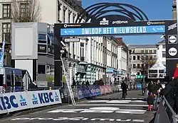 Im Jahr 2009 erhielt das Rennen einen neuen Namen, da die Zeitschrift Het Volk von der Zeitschrift Het Nieuwsblad übernommen worden war.[21] Somit wurden die Ronde van Vlaanderen und der als Omloop van Vlaanderen gegründete Omloop Het Nieuwsblad erstmals von derselben Zeitschrift geleitet. Nur ein Jahr später übernahm die von Wouter Vandenhaute gegründeten Flanders Classics die Organisation der beiden Rennen.[22] Die Strecke wurde von diesen Veränderungen anfangs nicht beeinflusst und hielt an Gent als Start- und Zielort fest. Als Schlussanstieg diente der Molenberg, der rund 35 Kilometer vor dem Ziel überquert wurde, ehe es über mehrere Kopfsteinpflasterstraßen flach in Richtung Ziel ging.[23] Im Jahr 2012 änderte die Flandern-Rundfahrt ihre Streckenführung und hielt ihr Finale nicht mehr auf der Mauer von Geraardsbergen und dem Bosberg ab. Dies ermöglichte dem Omloop Het Nieuwsblad zu seinen anfänglichen Anstiegen zurückzukehren und so kam es bei der 73. Austragung im Jahr 2018 zu der bislang größten Streckenveränderung des Rennens. Während Gent weiterhin als Startort diente, ging das Rennen nun in Ninove zu Ende und übernahm somit das Finale der Flandern-Rundfahrt.[9] Die letzten beiden Anstiege des Rennens erfolgen nun rund 17 und 13 Kilometer vor dem Ziel, was sich stark auf die Rennverläufe auswirkte.[24] Seit dem Jahr 2017 ist der Omloop Het Nieuwsblad Teil der 2011 gegründeten UCI WorldTour, die als wichtigste Rennserie im Straßenradsport gilt.[25]