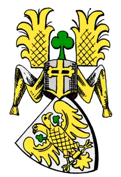 Das Stammwappen zeigt im Silber einen goldenen (Variante: schwarzen), zweiköpfigen Adler, aus dessen Flügel-Sachsen (Flügelknochen) ein grüner Kleestengel mit einem dreiblättrigen Blatt aufsteigt. Auf dem Helm mit gold-silbernen Decken zwischen einem offenen, goldenen (schwarzen) Adlerflug der Kleestengel. Die Helmdecken sind gold (Schwarz) und silbern.