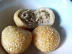 Zur Zubereitung werden mit Pandanusessenz gewürzte Reismehlkugeln mit Palmzucker gefüllt und anschließend in Wasser gekocht oder frittiert. Die zubereiteten Kugeln werden in Kokosraspeln oder Sesamkörnern gewälzt.