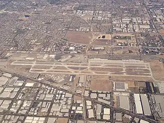 - Am 31. März 1971 verunglückte eine Boeing 720-047B der Western Airlines (Luftfahrzeugkennzeichen N3166) auf dem Flughafen. Die fünf Besatzungsmitglieder, die einen Trainingsflug absolvierten, kamen ums Leben. Unfallursache war das Versagen einer Stützbefestigung des hydraulischen Antriebs des Seitenruders aufgrund einer Kombination aus Spannungsrisskorrosion und hoher Zugbelastung, was kurz nach Beginn eines Durchstartmanövers bei einem simulierten Triebwerksausfall zum vollständigen Verlust der Kontrolle über das Seitenruder führte (siehe auch Western-Airlines-Flug 366).[22]