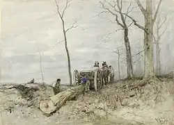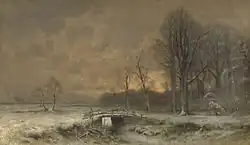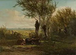 zergliedert. Diese sind kennzeichnend für die niederländische Malerei des 17. Jahrhunderts.[1] Schon zu jener Zeit waren Landschaften von Jan van Goyen (1596–1656),[2] Simon de Vlieger (1601–1653),[3] Aert van der Neer (1603–1677),[4] Jan Wijnants (1632–1684)[5] und Meidert Hobbema (1638–1709)[6] die Wegbereiter dieser Bildgattung.