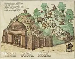Ein früher Versuch in Deutschland, eine dramatische Handlung mit singenden Protagonisten in einem Bühnenbild aufzuführen, ist die Aufführung von Orpheus und Amphion auf einer Simultanbühne anlässlich der Jülichschen Hochzeit von Johann Wilhelm von Jülich-Kleve-Berg mit Markgräfin Jakobe von Baden in Düsseldorf 1585. Als möglicher Komponist der nicht überlieferten Musik wird Andrea Gabrieli genannt. Die Musik sei so schön gewesen, „daß es denselben / so dazumahl nit zugegen gewesen / und solchen Musicum concentum & Symphoniam gehört haben / onmüglich zu glauben.“ Die Handlung war freilich primär eine Allegorese im Sinne eines Fürstenspiegels.