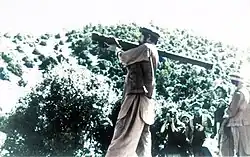 Saudi-Arabien überwies das Geld auf ein Schweizer Bankkonto der CIA und diese beschaffte davon und mit den vom US-Kongress genehmigten Mitteln Waffen.[90] Eine weitere Quelle waren Finanzmittel privater Spender vor allem aus den wohlhabenden Golfstaaten, die direkt an die Kriegsparteien gingen. Nach Schätzungen der CIA waren diese Mittel beträchtlich und betrugen bis zu 25 Millionen US-Dollar monatlich.[99] Nur etwa ein Viertel des Geldes an den Widerstand soll aus staatlichen Quellen gekommen sein.[100] Die Operation Cyclone war als geheim eingestuft und die USA und ihre Verbündeten verfolgten bis Mitte der 1980er eine Strategie der glaubhaften Abstreitbarkeit. Daher wurden ausschließlich Waffen beschafft, bevorzugt sowjetischer Herkunft, die nicht zu den USA zurückverfolgt werden konnten.[65] Die ersten Lieferungen bestanden aus mehreren hundert tausend Lee-Enfield-Repetiergewehren aus Griechenland und Indien, einer Standardwaffe der britischen Infanterie bis zu den 1950ern, sowie aus mehreren tausend RPG-7-Panzerbüchsen aus Ägypten und China.[101] Im weiteren Verlauf wurden auch große Mengen an AK-47-Sturmgewehren, schweren DSchK-Maschinengewehren, Mörsern, Landminen und Munition geliefert.[102][103] Ägypten war bis Präsident Anwar as-Sadat die Seiten im Kalten Krieg gewechselt hatte, ein sowjetischer Klientelstaat gewesen und lagerte noch große Mengen sowjetischer Waffen und stellte diese auch noch her.[104] Die Carter-Regierung hatte Sadat innerhalb weniger Wochen nach der sowjetischen Intervention überzeugen können, Waffen sowjetischer Bauart zu liefern.[105] Zusammen mit China und später auch Israel war Ägypten der größte Waffenlieferant.[106] Israel hatte im Libanonkrieg 1982 von der PLO große Mengen sowjetischer Waffen erbeutet und verkaufte sie nun der CIA.[107] Teilweise konnten auch Waffen über Tarnfirmen oder von korrupten Armeeangehörigen in der DDR, Polen, der ČSSR und in Afghanistan erworben werden.[108][109][110] So verkaufte ein polnischer General den USA sowjetische schultergestützte SA-7 Flugabwehrraketen.[111] Die Waffenlieferanten strichen erhebliche Gewinnmargen ein, während die Qualität der Waffen aus Ägypten und der Türkei vom ISI als teilweise veraltet und zuweilen auch als schrottreif angesehen wurde. Die Qualität der Waffen aus China wurde hingegen als tadellos beschrieben.[109][112] Die Information, die USA würden chemische Waffen an den afghanischen Widerstand liefern, beruhte auf sowjetischer Desinformation.[113]