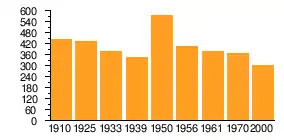 | Jahr | 1910 | 1925 | 1933 | 1939 | 1950 | 1956 | 1961 | 1970 | 2000 |