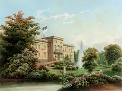 - Daniel Oppenheim (* 11. Juni 1800 in Berlin), Negotiant, Bankier, Rittergutsbesitzer, Mitinhaber der Firma M. Oppenheims Söhne Komptoir und Eisenlager.[27] Er wurde einige Zeit nach seinem Bruder ebenfalls getauft auf den Namen Carl Daniel, das war Bedingung für die Nobilitierung. Die Auguste-Luisen-Stiftung an das Krankenhaus der Barmherzigen Schwestern in Baden, aus deren jährlichen Zinsen zwei arme Mädchen von dort erzogen werden sollten, und die Stiftung an den evangelischen Schulfond zu Baden, dessen Zinsenertrag für das Gehalt eines evangelischen Volksschullehrers verwendet werden sollte, beide vom 28. Oktober 1856, gehen auf ihn zurück.[28] Er wurde Ehrenbürger der Stadt Baden im Jahre 1861[29] und war Mitglied der Gesellschaft der Freunde, einem jüdischen Hilfsverein in Berlin. Er ehelichte Auguste Hermine Dittbauer.