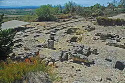 Daher wird heute einstweilen davon ausgegangen, dass die die von Menschenhand angelegten Terrassen unterstützenden talseitigen Mauern im Norden und Süden der Anhöhe errichtet wurden, um ebenes Bauland zu gewinnen. Diese etwa 4,50 Meter hohen Mauern erfüllten möglicherweise auch Schutzfunktionen.