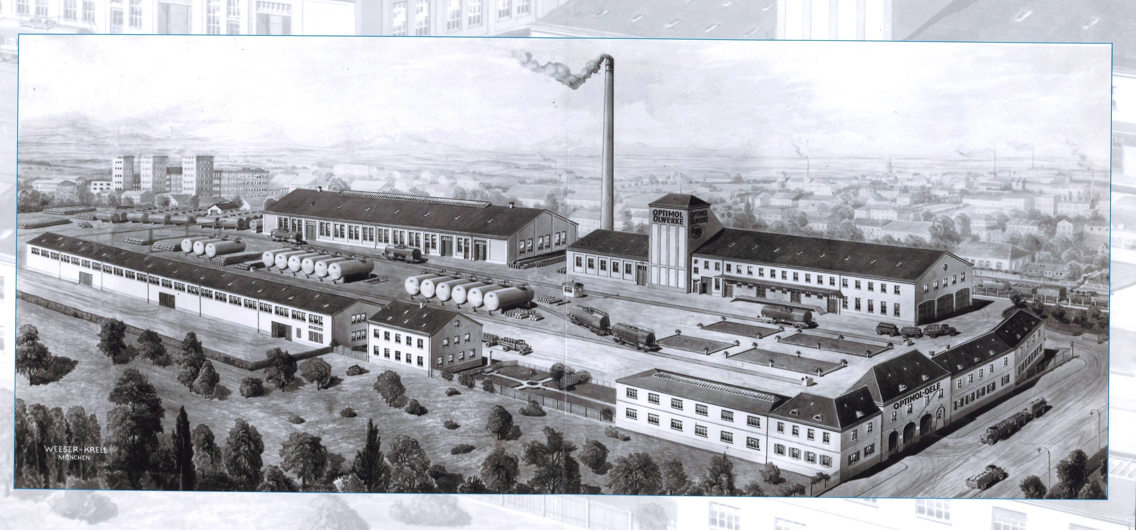 - Historisches Bild der ursprünglichen Optimol Ölwerke.