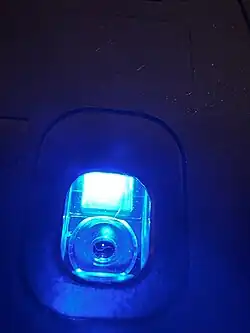 Durch die Entwicklung erster leistungsfähiger blauer Leuchtdioden in den 1990ern[5] wurde die Voraussetzung für optische Mäuse mit blauer Belichtungseinheit geschaffen. Mit der Microsoft Explorer Mouse[6] war im Jahr 2008 erstmals eine derartige Maus auf dem Markt erhältlich. Sie soll gegenüber Laser- und herkömmlichen optischen Mäusen flexibler sein, was den verwendeten Untergrund angeht, und weniger empfindlich auf Verunreinigungen wie Staub reagieren. Allerdings können auch hiermit keine Glas- und Spiegelflächen genutzt werden.[7] Diese Technik wird je nach Hersteller als BlueTrack[8] (Microsoft), Blue Wave[9] (Hama) oder BlueEye[10] (Genius) bezeichnet.