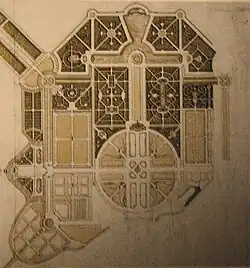 Da die Fensterfront der Hauptfassade nach Nordwesten ausgerichtet werden musste, versah man zur besseren Raumbelichtung die Rückwand mit einigen Fenstern. Im Gegensatz zum nördlichen Zirkelbau, dessen Räumlichkeiten überwiegend der Überwinterung der Kübelpflanzen dienten und somit einfach ausgestattet waren, wurden im südlichen Zirkel bis 1755 zwei reich ausgeschmückte Festsäle eingerichtet.